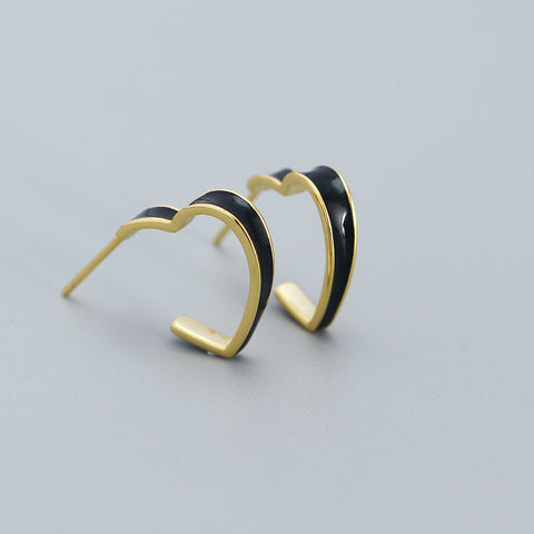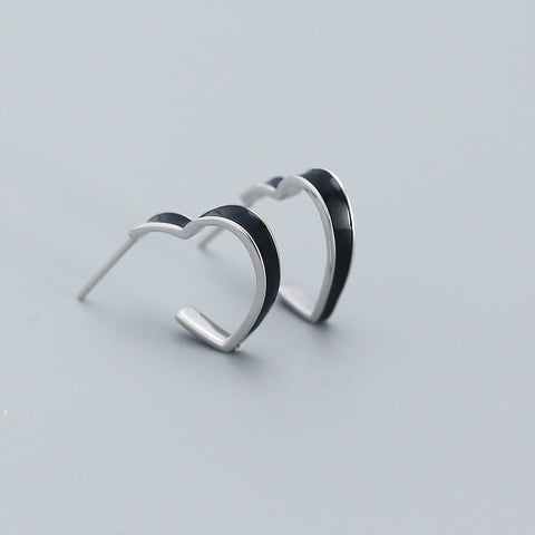 925 Sterling Silver Heart Earrings In Contrasting Color