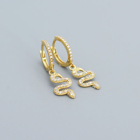 925 Sterling Silver Snake Charm CZ Hoop Earrings