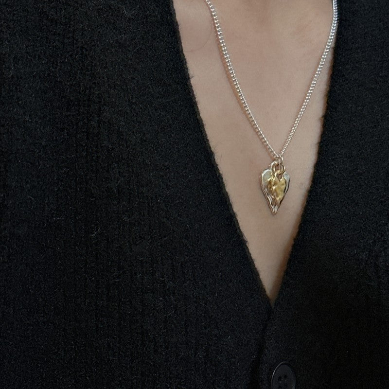925 sterling silver fashion heart gold and silver contrasting necklace