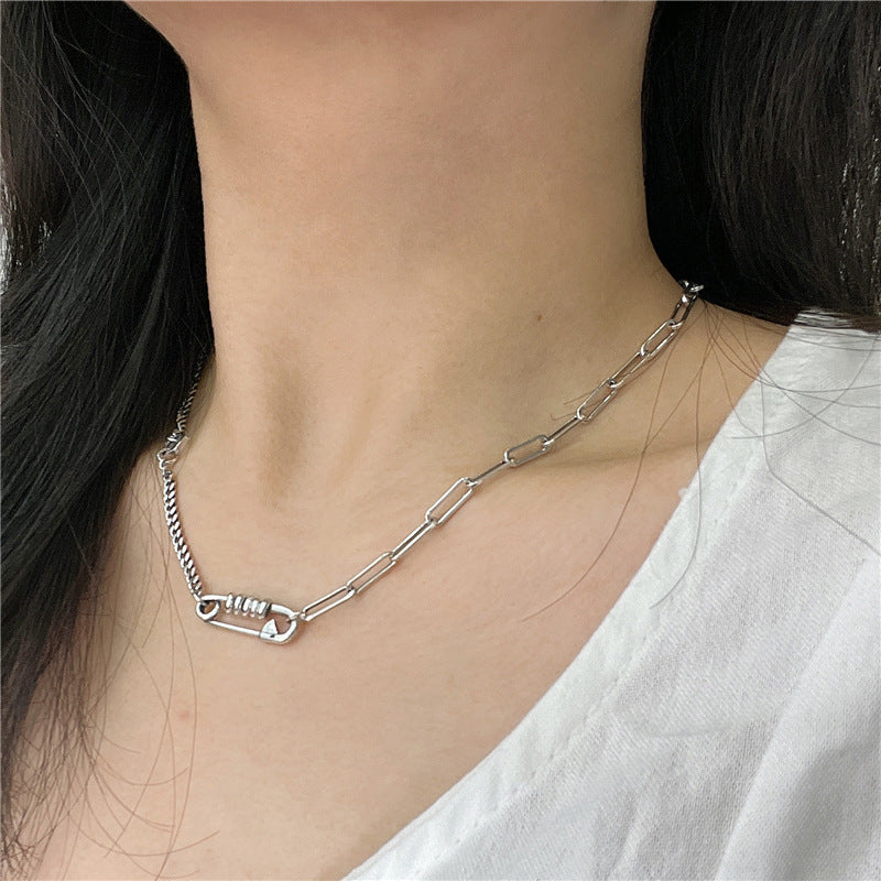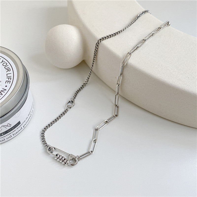 925 sterling silver fashion paper clip vintage patchwork necklace