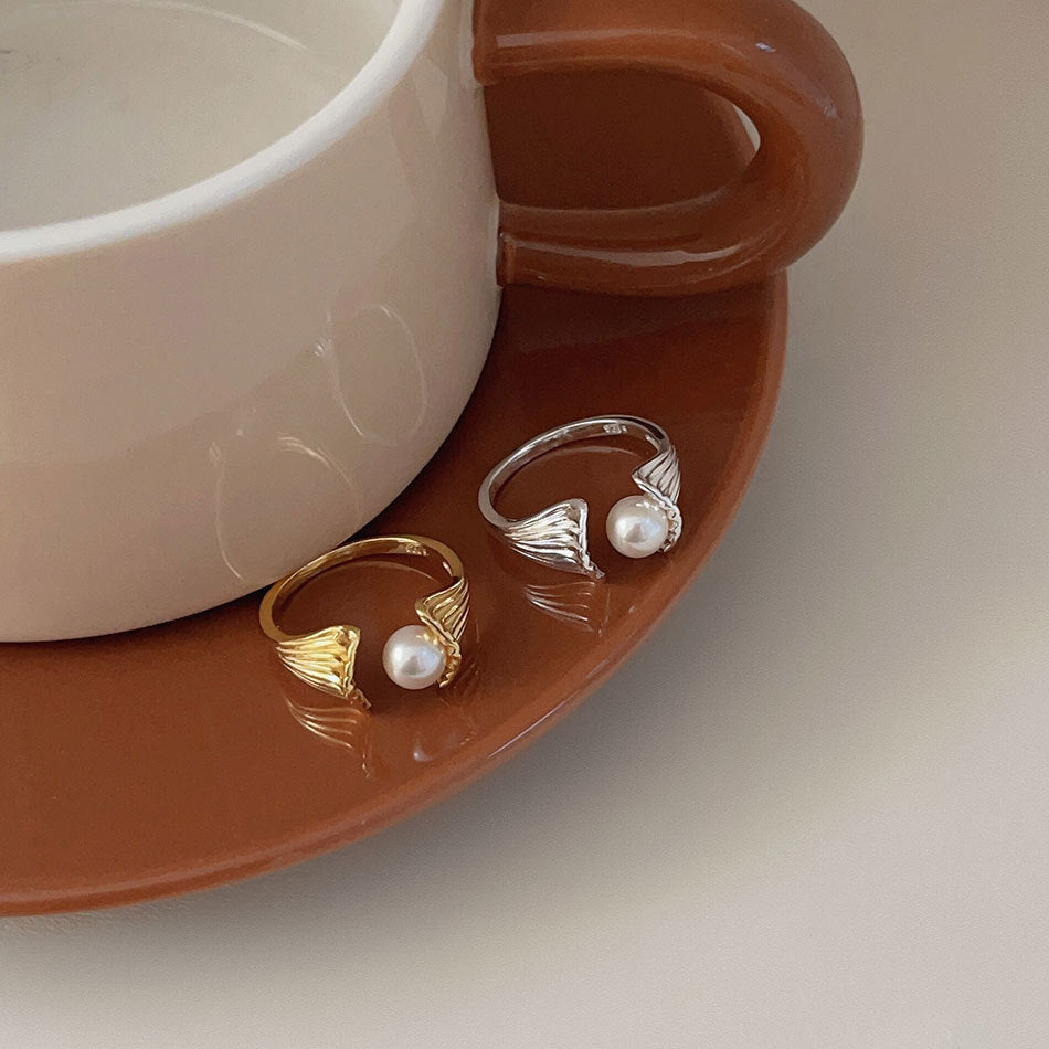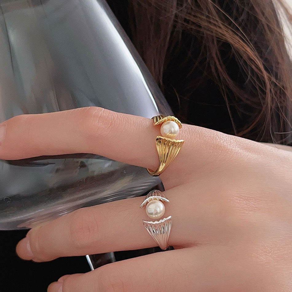 925 sterling silver fashion simple ring with mother of pearl
