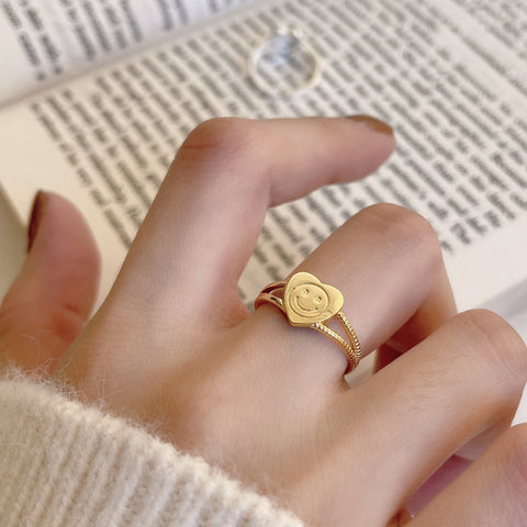 925 Sterling Silver Smiley Face Heart Adjustable Ring
