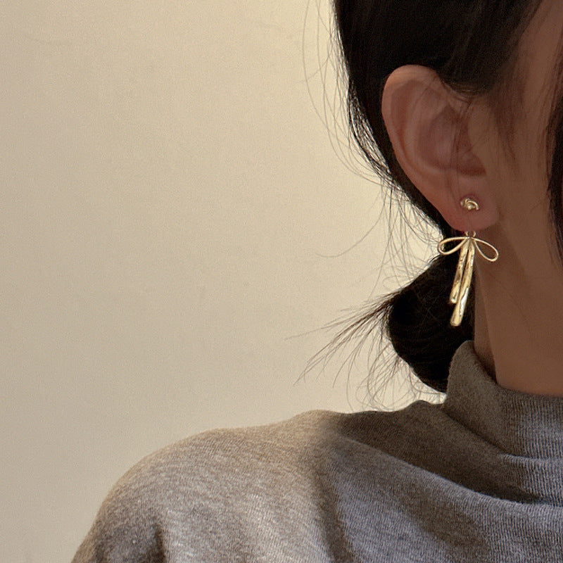 925 sterling silver stylish bow texture earring