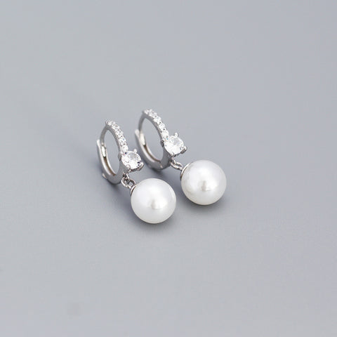 925 Sterling Silver Freshwater Pearl Charm Hoop Earrings