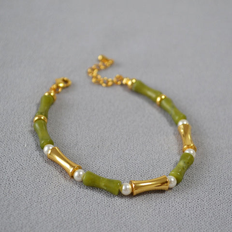 Freshwater Natural Stone Bamboo Joint Design Brass Bracelet Bangle