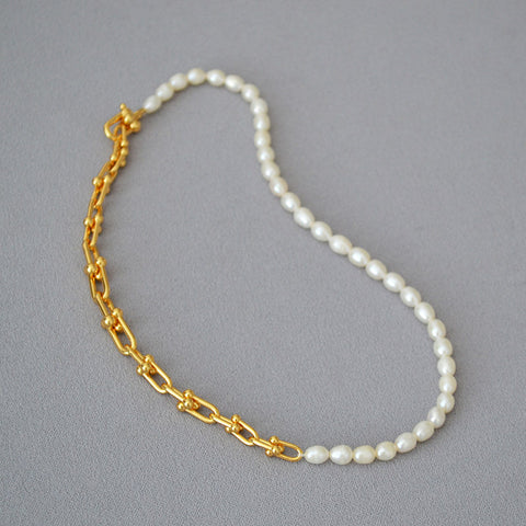 Brass Freshwater Pearl U-shaped Necklace
