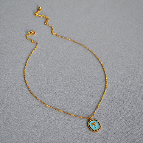 Brass Palm Tree Pendant Cross Chain Necklace